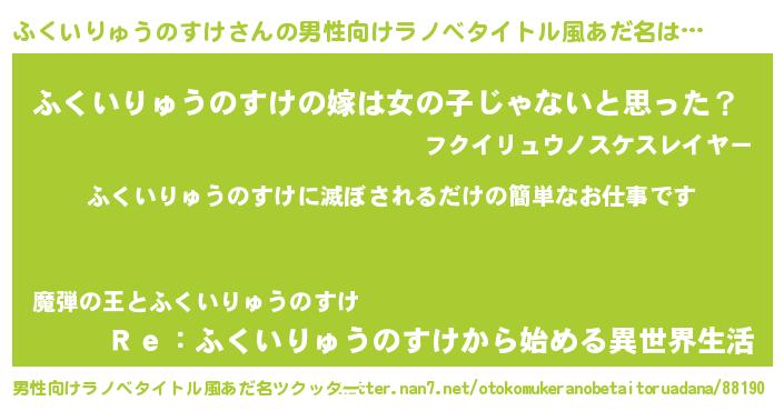 | 胡散臭い通販商品みたいなあだ名 | 『全米が絶賛したサプリメント…その名も「ふくいりゅうのすけ」』 |