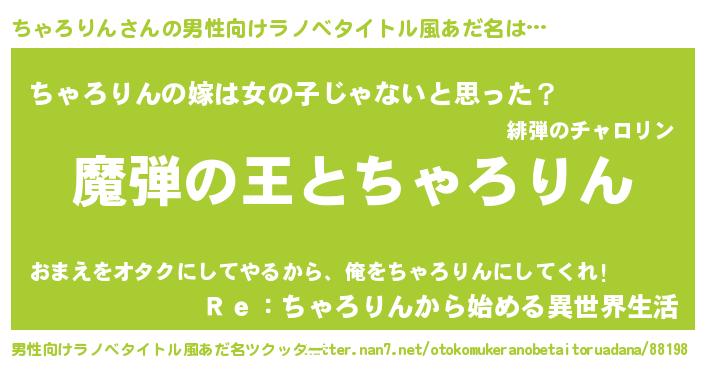 | 意味不明あだ名 | 『住所不定無職ちゃろりん(41歳)』 |