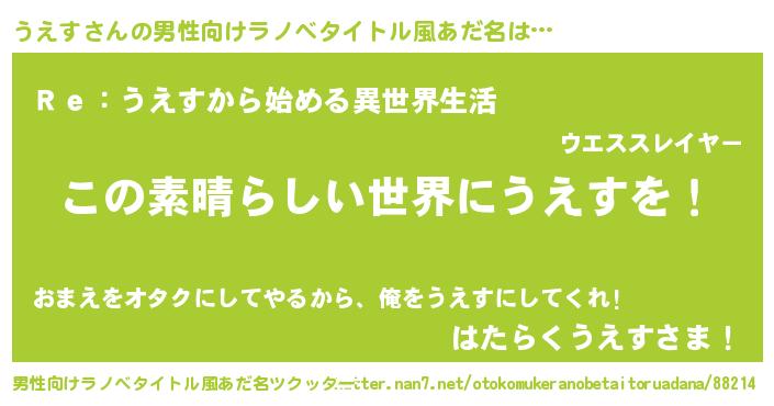 | 意味不明あだ名 | 『住所不定無職うえす(53歳)』『自称うえす』 |