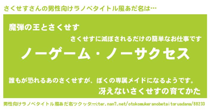 | 女子向けラノベタイトル風あだ名 | 『死神さくせすの再婚』 |