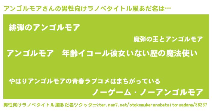 | 女子向けラノベタイトル風あだ名 | 『アンゴルモアの玉の輿計画!』 |