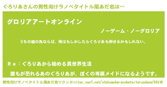 | ヒーロー風カッコイイあだ名 | 『ウルトラぐろりあマン』『ネオグロリア』 |