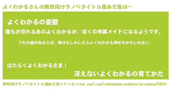 | ファンタジー風あだ名 | 『エターナルヨクワカルー』『ヨクフェル』 |