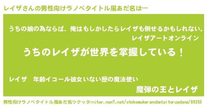 | 意味不明あだ名 | 『レイザフォーエバー』『ペロリンレイザ』 |