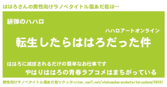 | ヘコむあだ名 | 『豆乳』『ははにー』『ははろ(笑)』 |