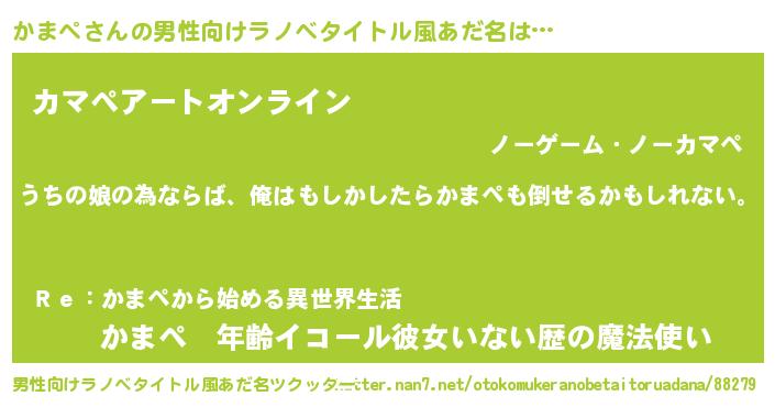| 女子向けラノベタイトル風あだ名 | 『かまペの婚約者』『死神かまペの再婚』 |