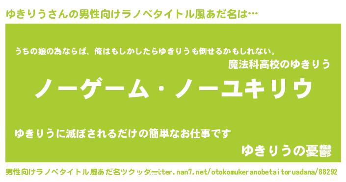 | 女子向けラノベタイトル風あだ名 | 『ゆきりう恋絵巻』『ゆきりうの婚約者』 |