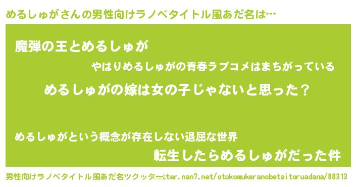 | 意味不明あだ名 | 『とにかく怪しいめるしゅが』 |