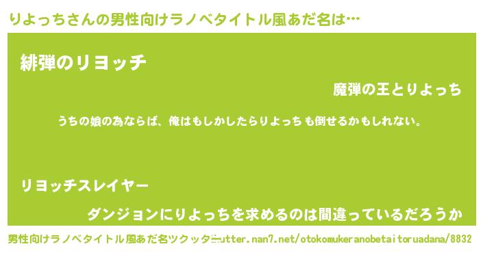 | ヒーロー風カッコイイあだ名 | 『ウルトラりよっちマン』『魔戒騎士リヨ』 |