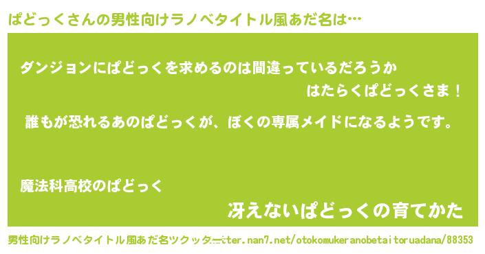 ぱどっくさんの男性向けラノベタイトル風あだ名をツクッター!