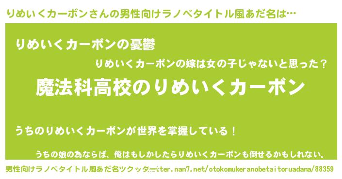 | 女子向けラノベタイトル風あだ名 | 『りめいくカーボンなんてお断りですっ。』 |