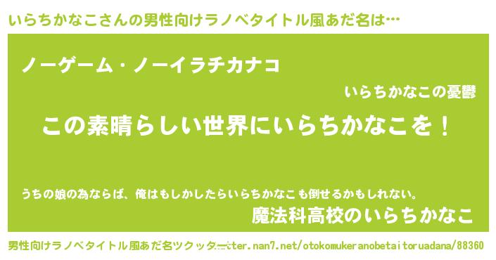 | 胡散臭い通販商品みたいなあだ名 | 『あなたにだけ特別に提供する世界で10本だけ現存している希少なブランデー…その名も「いらちかなこ」』 |