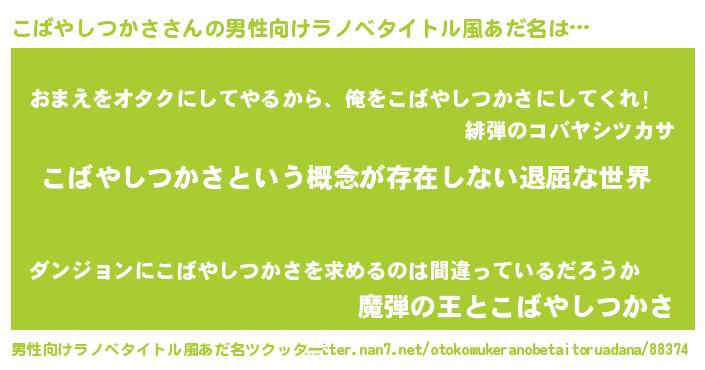 | 意味不明あだ名 | 『永久保存こばやしつかさ』 |