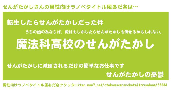 | 女子向けラノベタイトル風あだ名 | 『せんがたかしなんてお断りですっ。』 |