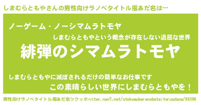 | ヘコむあだ名 | 『しまむらともや(爆)』『しまっちょ』 |