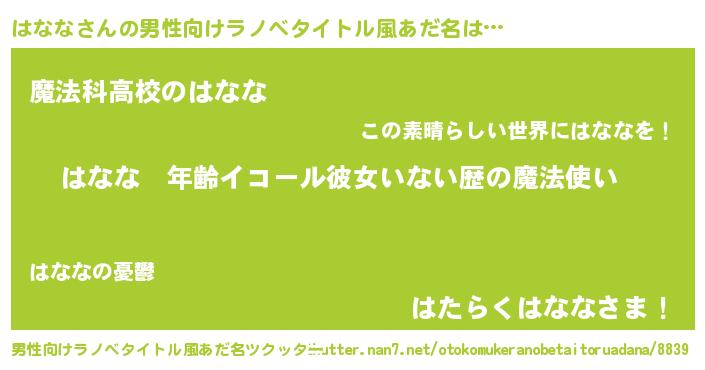 | 胡散臭い通販商品みたいなあだ名 | 『芸能人もオススメする高麗人参…その名も「はなな」』 |