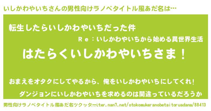 | ピコ太郎風あだ名 | 『イシ三郎』『イイ太郎』『イコ一郎』 |