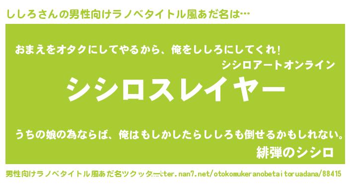 | ヘコむあだ名 | 『ししにー』『牛乳』『しし太郎』 |