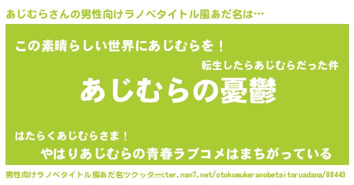 | 胡散臭い通販商品みたいなあだ名 | 『必ず成功する水晶球…その名も「あじむら」』 |