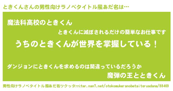 | 意味不明あだ名 | 『自称ときくん』『ペロリンときくん』 |