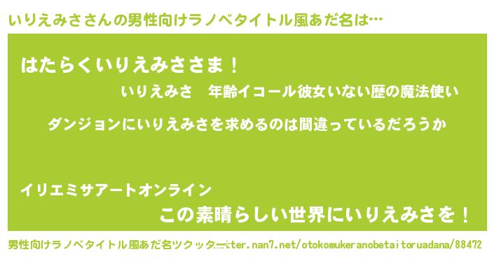| 女子向けラノベタイトル風あだ名 | 『いりえみさは平凡を望む』 |