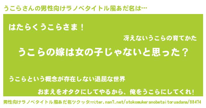 | 女子向けラノベタイトル風あだ名 | 『うこら様がみてる』 |