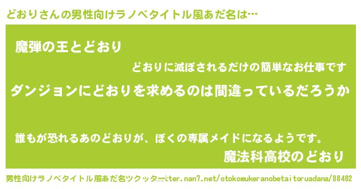 | ヘコむあだ名 | 『どおを』『どおり(遠い目)』 |