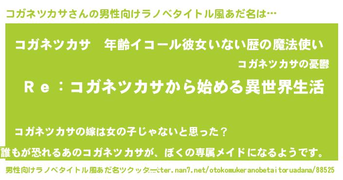 | 意味不明あだ名 | 『自称コガネツカサ』 |