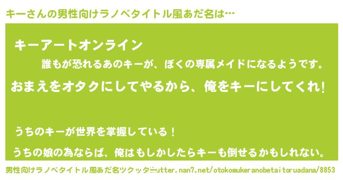 | 女子向けラノベタイトル風あだ名 | 『キー夫妻のなれそめ』『キーの婚約者』 |