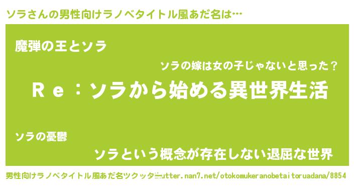| 女子向けラノベタイトル風あだ名 | 『闇のソラ』『ソラの契約王妃』 |