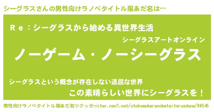 | 女子向けラノベタイトル風あだ名 | 『死神シーグラスの再婚』 |
