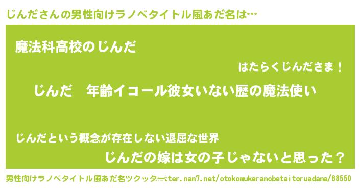 | 女子向けラノベタイトル風あだ名 | 『じんだの玉の輿計画!』 |