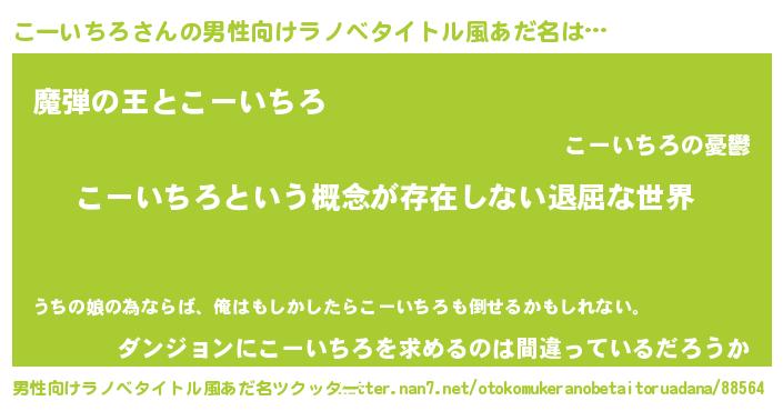 | 女子向けラノベタイトル風あだ名 | 『異世界で失敗しない100のこーいちろ』 |
