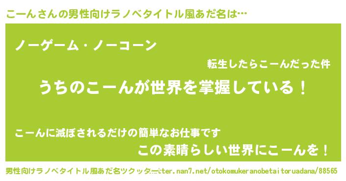 | 女子向けラノベタイトル風あだ名 | 『男装こーんの憂鬱な任務』 |