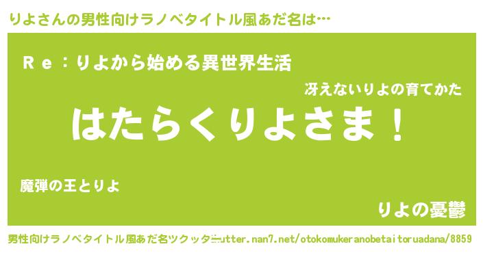 | ヘコむあだ名 | 『りよにゅー』『りよお』『豆乳』 |