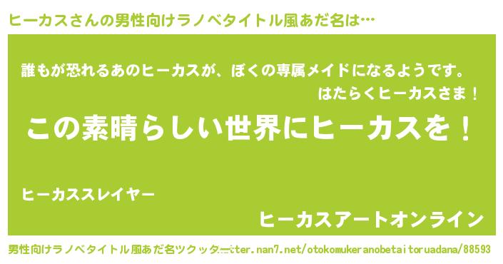 | ヘコむあだ名 | 『ヒーカス(爆)』『ヒーっふぃ~』 |