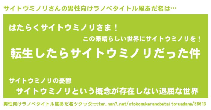 | 女子向けラノベタイトル風あだ名 | 『サイトウミノリの玉の輿計画!』 |