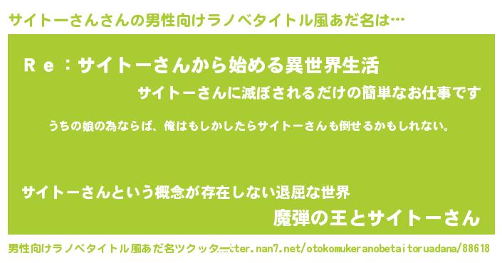 | ファンタジー風あだ名 | 『エターナルサイトーサンー』 |