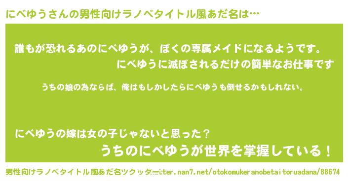 | ヒーロー風カッコイイあだ名 | 『ウルトラにべゆうマン』『ネオニベユウ』 |