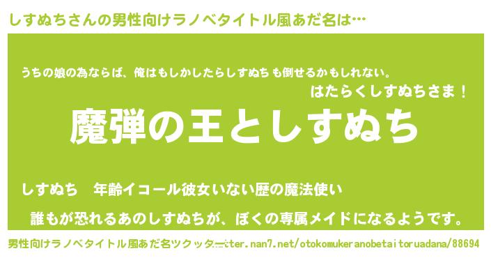 | 女子向けラノベタイトル風あだ名 | 『しすぬちが死なない童話 林檎のしすぬちの診療簿』 |