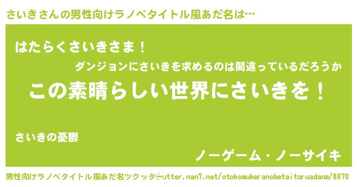 | 胡散臭い通販商品みたいなあだ名 | 『あなたにだけ特別に提供する世界で10本だけ現存している希少なブランデー…その名も「さいき」』 |