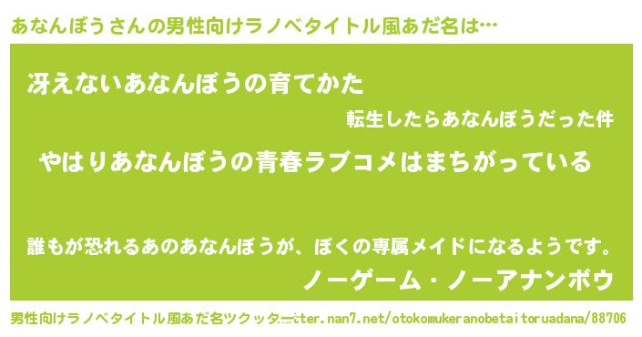 | 女子向けラノベタイトル風あだ名 | 『あなんぼう伯爵の花嫁』 |