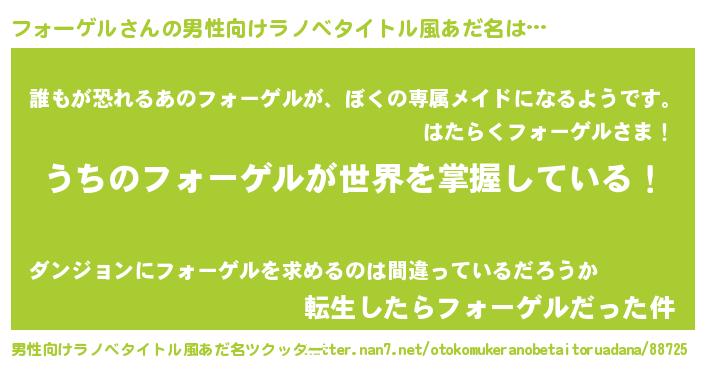 | ヘコむあだ名 | 『フォーゲル(爆)』『フォお』 |