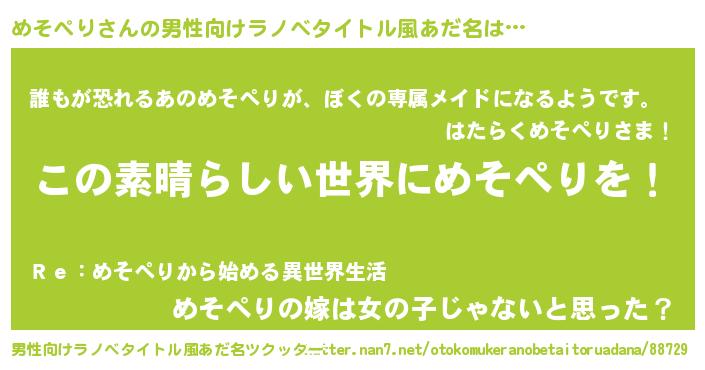 | 意味不明あだ名 | 『住所不定無職めそぺり(81歳)』 |