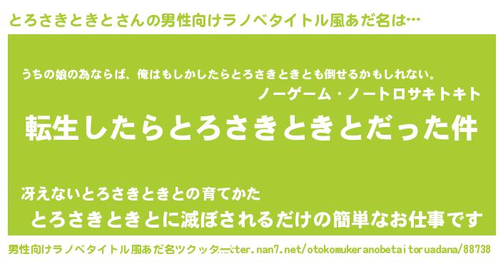 | 女子向けラノベタイトル風あだ名 | 『婚約破棄系悪役とろさきときとに転生したので、保身に走りました。』 |