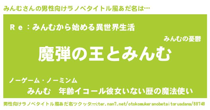 | 意味不明あだ名 | 『住所不定無職みんむ(5歳)』『自称みんむ』 |