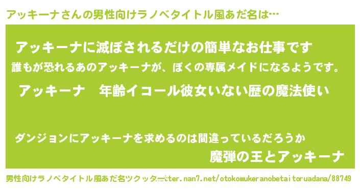 | 意味不明あだ名 | 『ニラ科アッキーナ属』『自称アッキーナ』 |