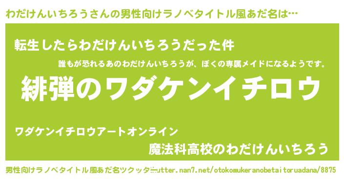 | ヘコむあだ名 | 『わだけんいちろう(小並感)』『わだふぇ~』 |