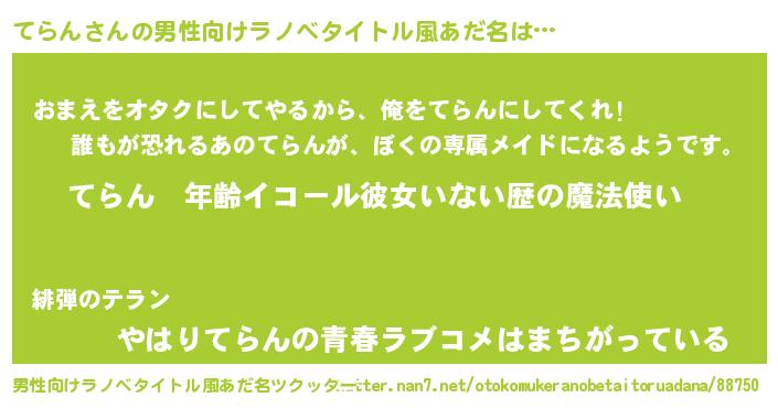 | ヒーロー風カッコイイあだ名 | 『慈愛の使者てらん』『ネオテラン』 |