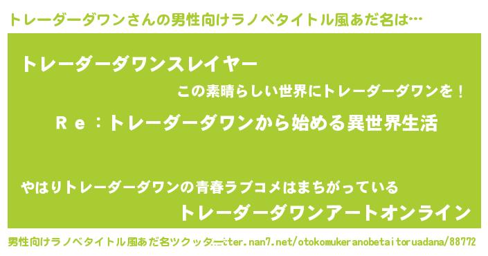 | 女子向けラノベタイトル風あだ名 | 『闇のトレーダーダワン』 |